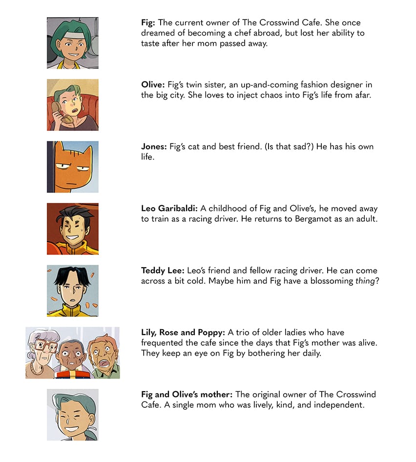 "Fig is being left behind. She's inherited the Crosswind Cafe, her mother's beloved shop and Fig's childhood home. In the tourist town of Bergamot, between mountain and sea, Fig rises early to open the café, and closes to sleep. Rinse and repeat."