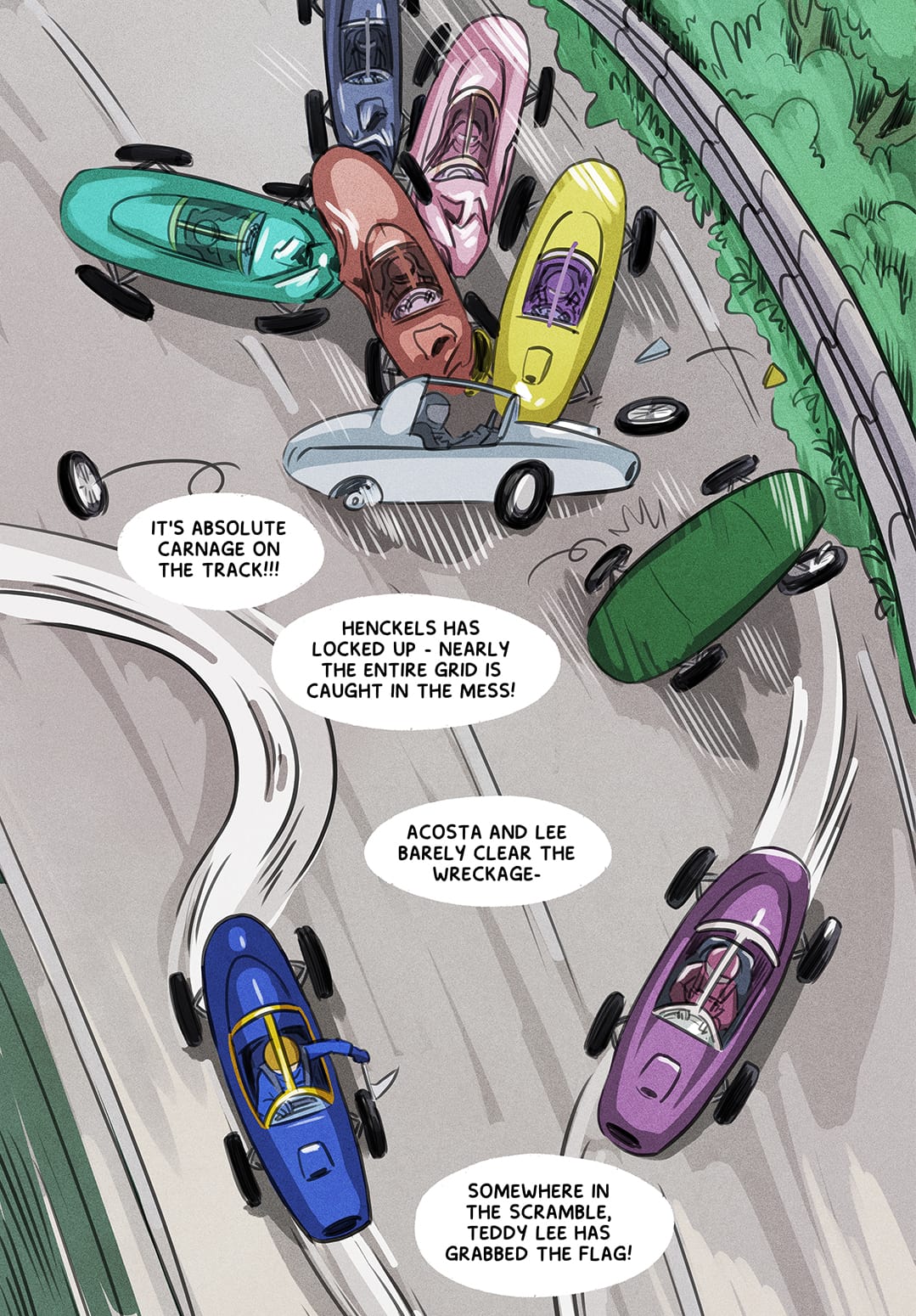Carnage on the roads!! In real life this racing format would end in so many broken limbs and lost lives, but stranger things have existed in the name of sport.