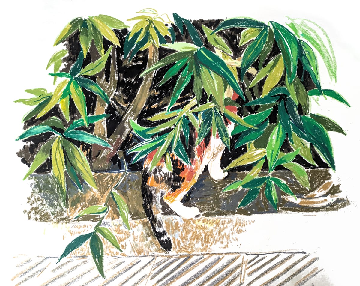 In non-Crosswind news! I went to Athens and Crete in October, and wrote a blog post on my website with some photos. While recovering from a deadline sprint, I've been drawing with traditional media again - right now it's oil pastels in my downtime. (Below: calico cat in foliage, as seen in Athens)
