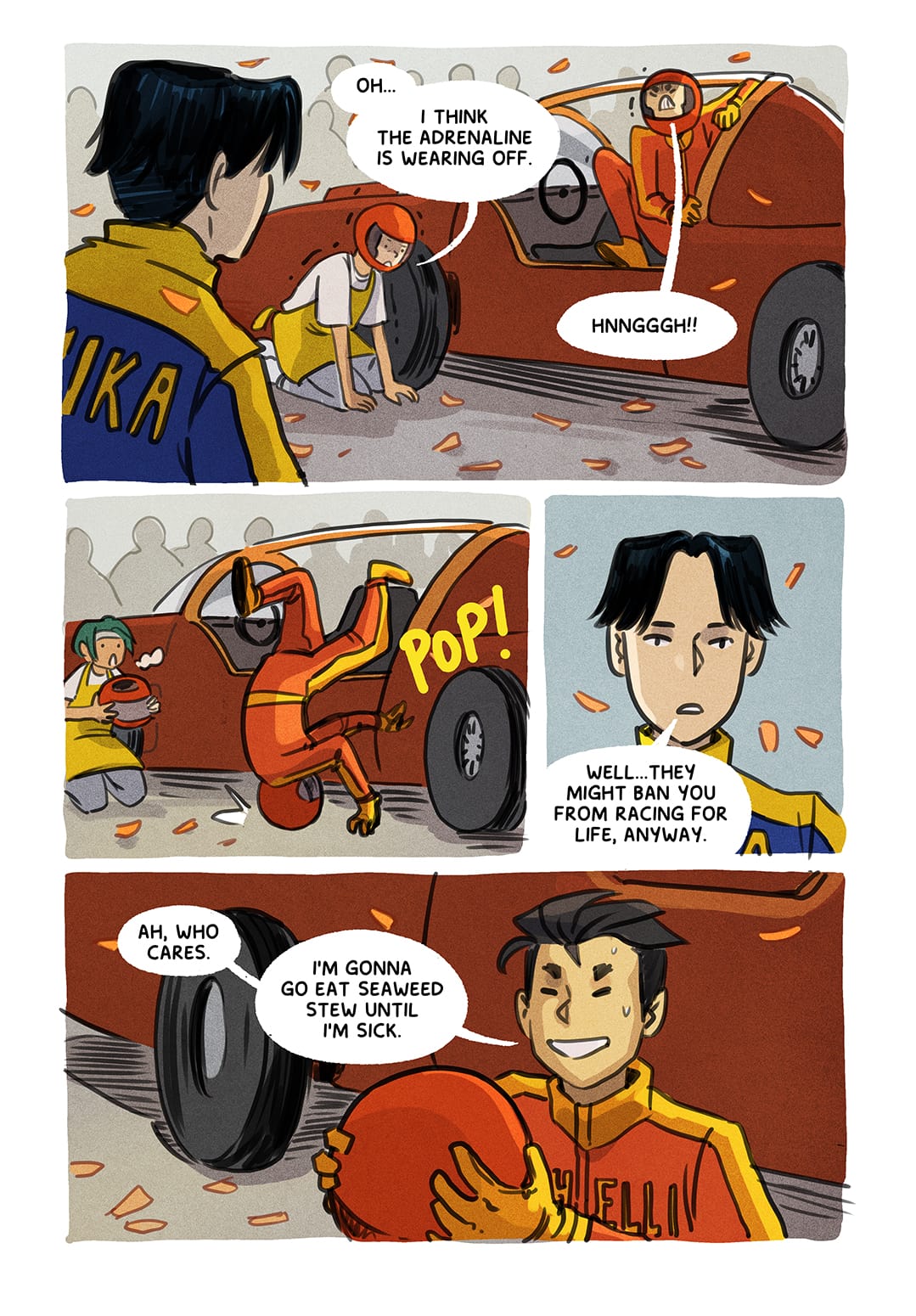 We're getting so close to the end of this giant chapter! Thanks so much for reading along so far, and indulging this strange slice-of-life racing crossover.